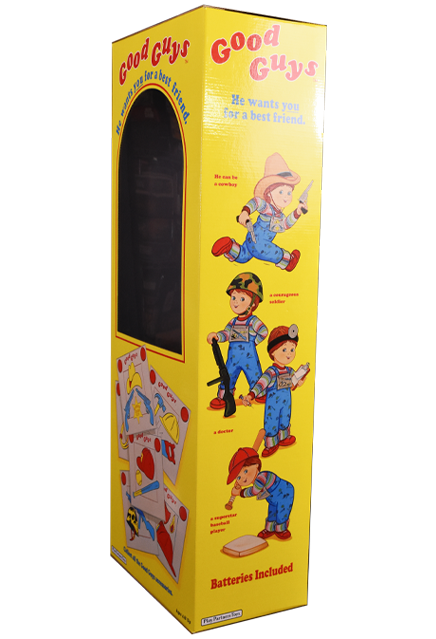 This box is a 1:1 recreation of the one used in the Child’s Play films. All the art work is taken directly from a screen used prop and retouched to give that fresh from the factory look.