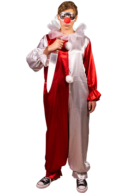 The Official Halloween 4: The Return of Michael Myers – Jamie Lloyd Clown Face Mask is made from Electro Plated Vacuform, which is a molded plastic connected with an elastic band, just like the mask as seen in the film.
