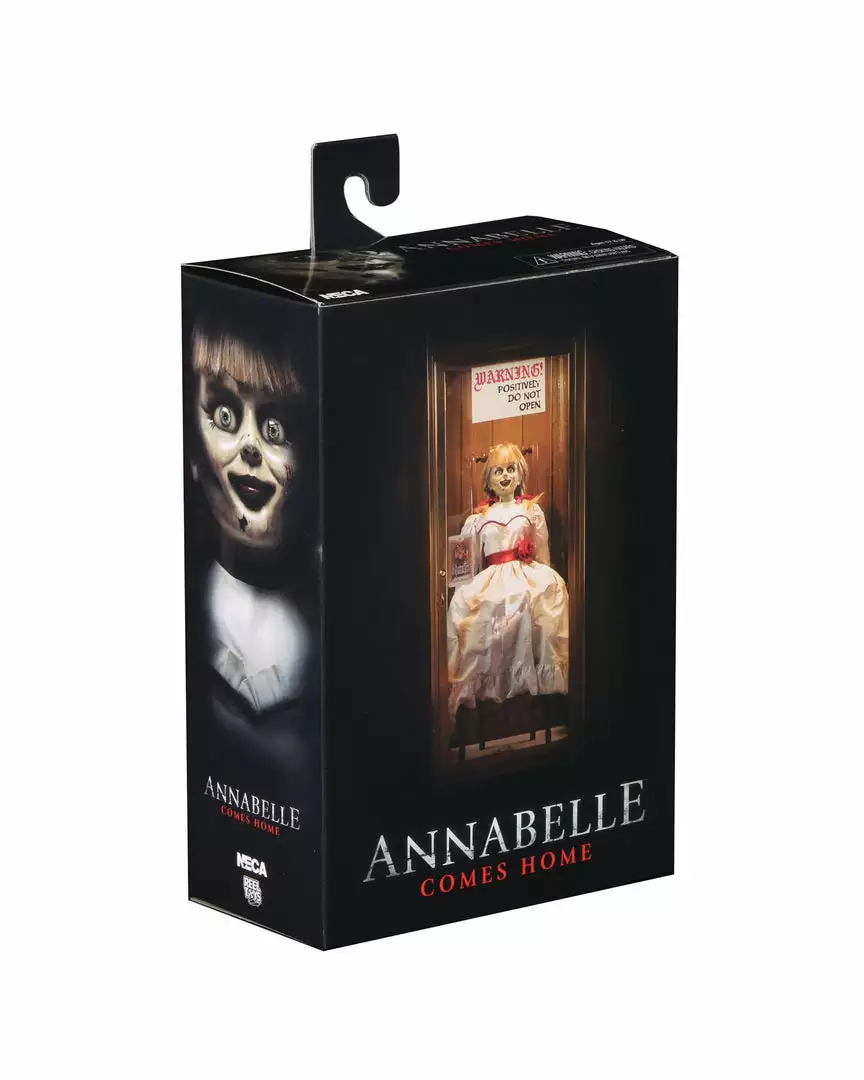 The possessed doll Annabelle appears throughout The Conjuring Universe films and in her own spin-off movies. The fully posable figure stands approximately 6” inches tall (7” scale) and replicates the doll’s appearance in Annabelle Comes Home. It features a soft goods skirt and comes with interchangeable heads, her chair and museum doll case accessories.