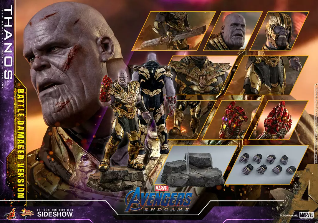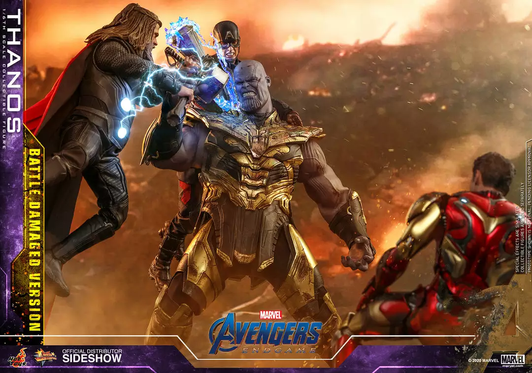 As a continuation of the incredible collectible series of Avengers: Endgame, Sideshow and Hot Toys present the Thanos (Battle Damaged Version) Sixth Scale Collectible Figure highlighting severe damages on armors inspired by the climactic battle on Earth from The Infinity Saga!