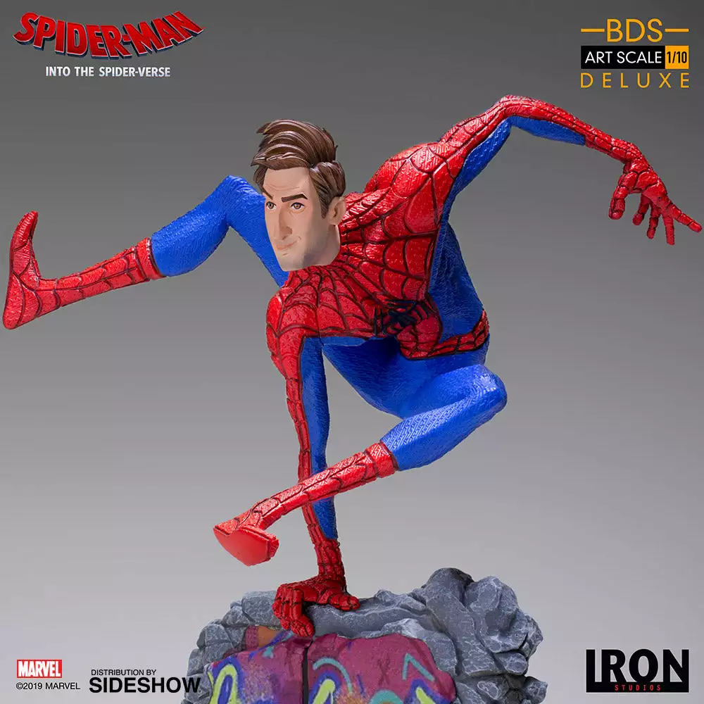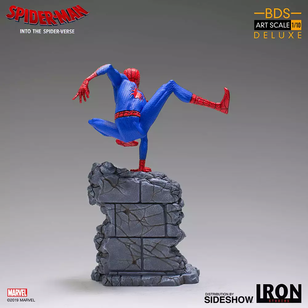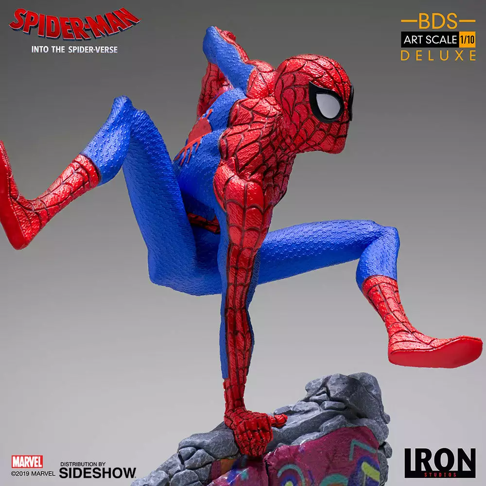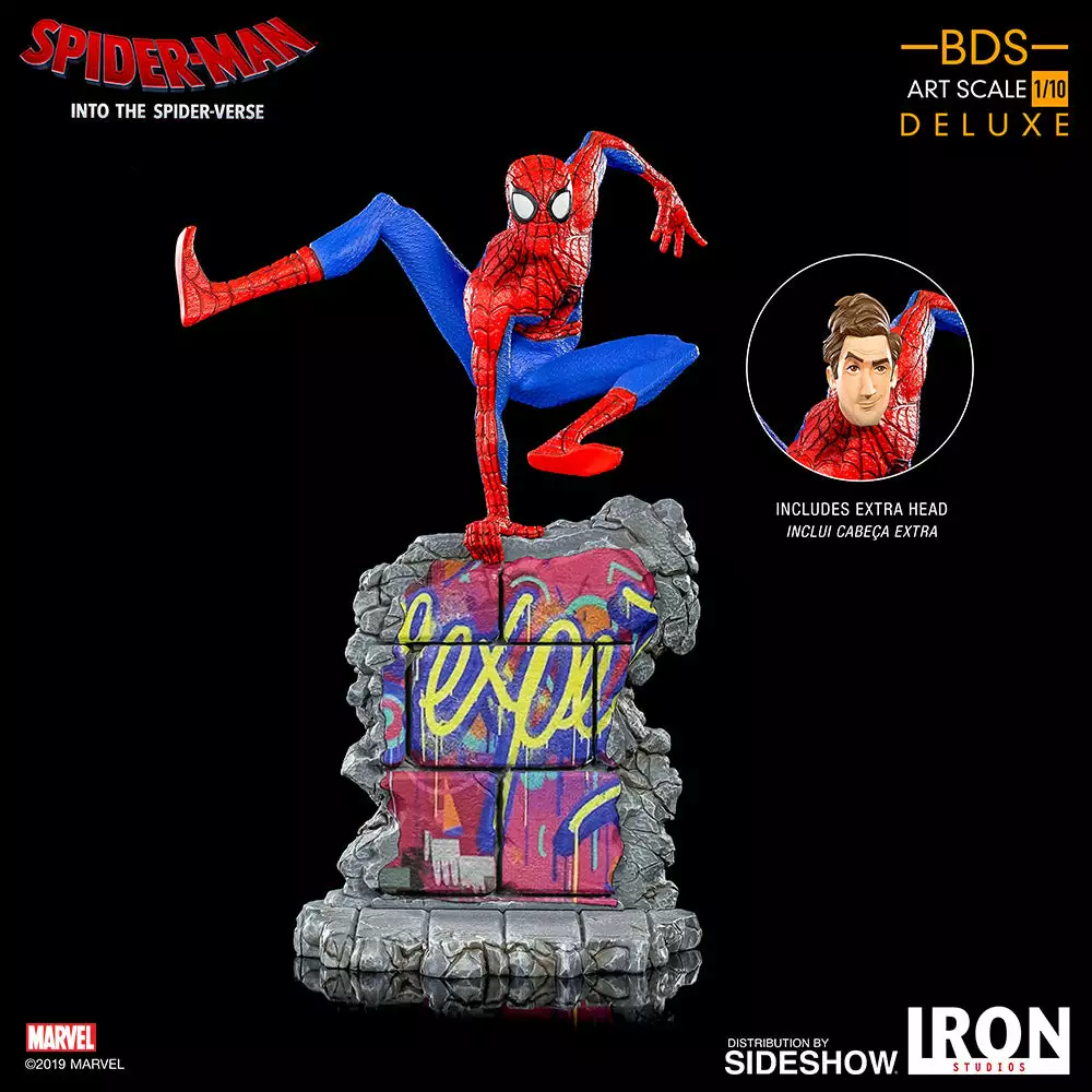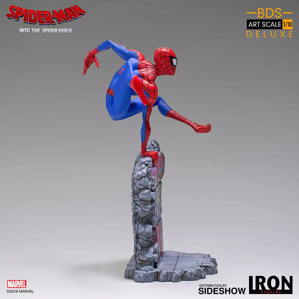The Battle Diorama Series features characters from the hit animated film, Spider-Man: Into the Spider-Verse! The Spider-Man (Peter B. Parker) Statue stands approximately 8.26″ tall and includes both masked and unmasked head sculpts.