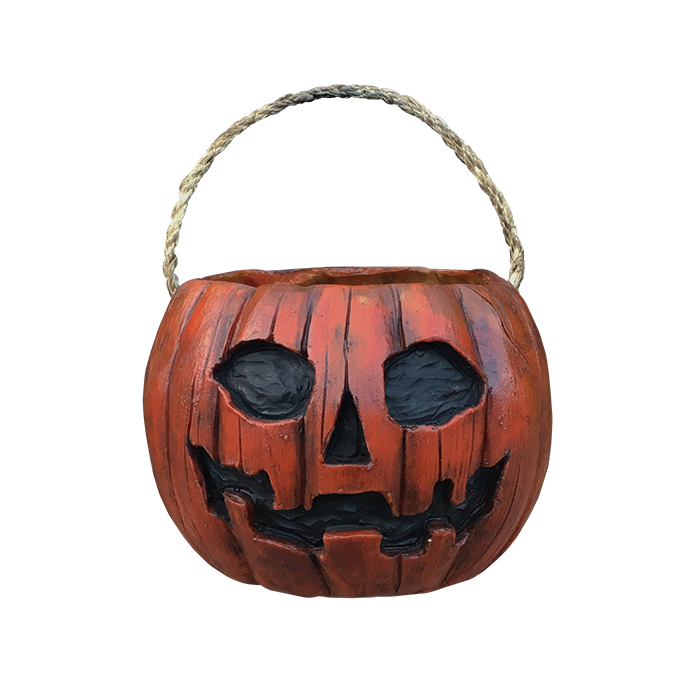 Sculpted for the movie by our very own VP of Art Direction Justin Mabry, this amazing prop comes directly from the screen used master and has an identical paint job to what is seen on the screen. The Pumpkin Pail is made in poly resin and comes with an attached rope handle. The height of the Pumpkin Pail is 6″ high and 7″ wide.