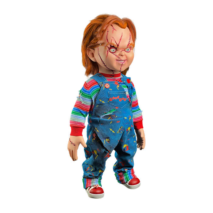 The Officially Licensed One-To-One Scale Seed of Chucky – Chucky Doll is the most screen accurate Scarred Chucky Doll ever produced. This Doll was developed by Tony Gardner and Alterian Inc. the company responsible for making the actual screen used Doll! Every detail of this Doll is made by using the actual screen used molds, including the clothing which was replicated using screen used swatches.